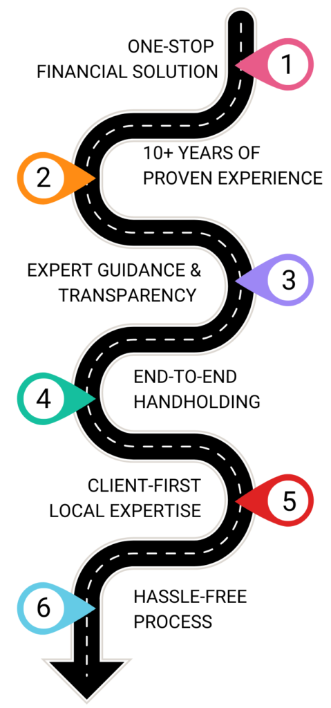 We provide complete financial solutions under one roof-including Income Tax, Investment, Insurance & Loan services.